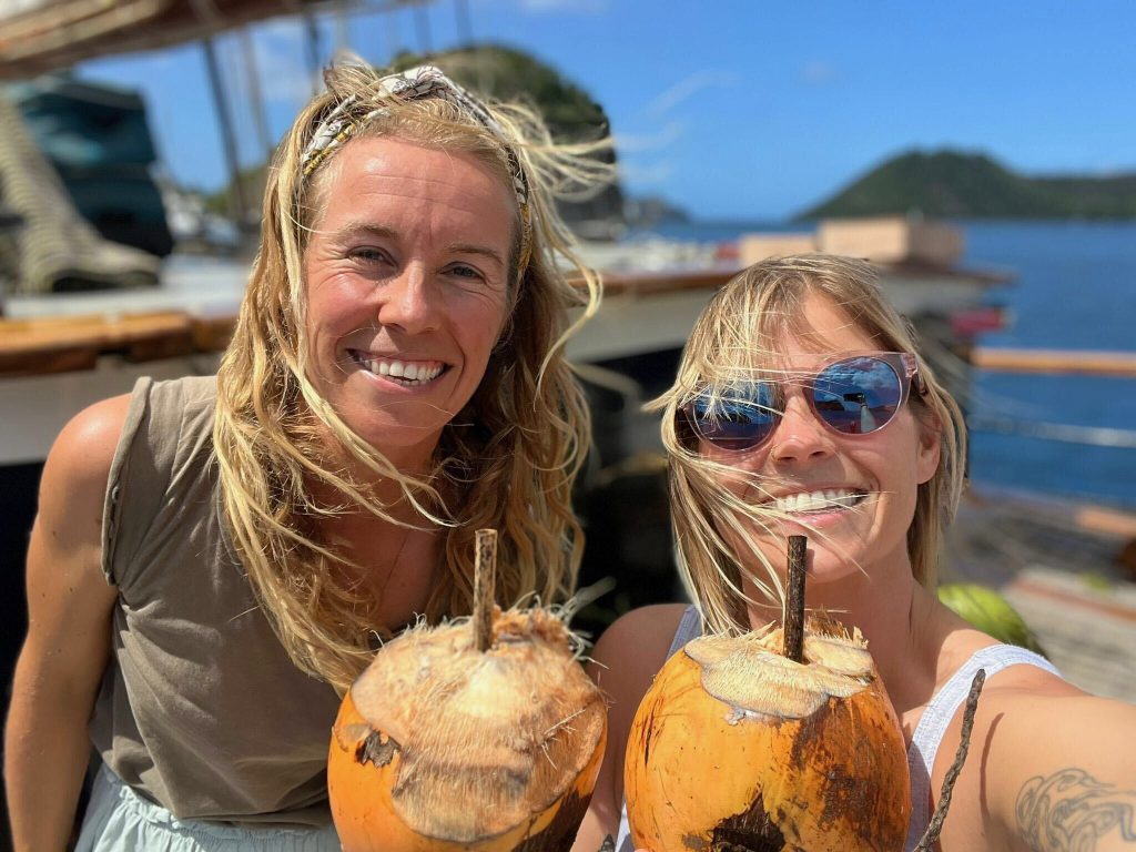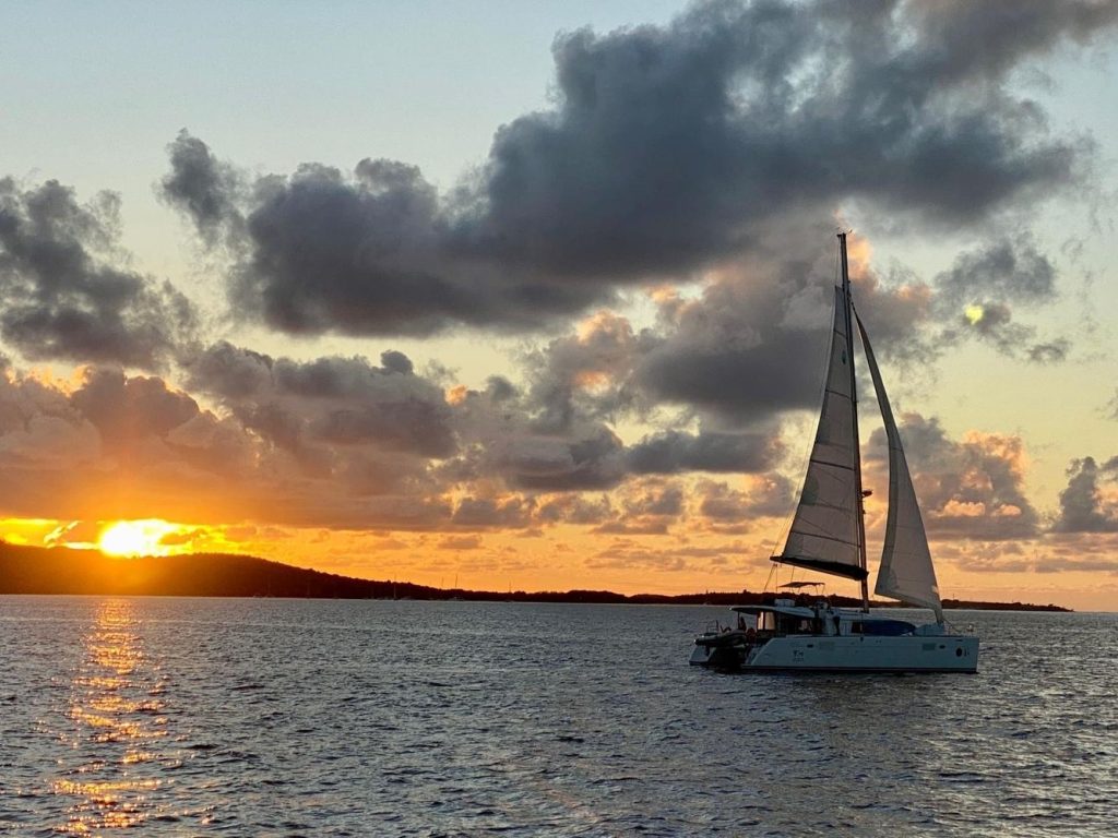Jumping into turquoise water seconds after waking up. Spotting dolphins riding the bow wave. Hiking up to a viewpoint and seeing nothing but ocean and islands. Anchoring in the Tobago Cays with turtles swimming beneath the boat. Eating freshly chopped papaya for breakfast. Watching the green flash at sunset with a coconut in hand. Night swimming in bioluminescent water under a sky full of stars.